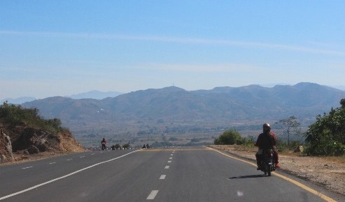 | ミャンマー中部を東西に横断する国道4号線・ヘーホー付近の峠道にて。この路線はインドネシア〜マレーシア〜タイ〜ミャンマー〜インド〜パキスタン〜イランを遠路結ぶアジアハイウェイ2号線にも指定されています。写真の区間は4車線舗装路として整備されていますが、前後にはダートや工事中の区間も多く、バイクや開放式の乗合トラックバスでは大量の砂埃を浴びることとなります。 [2019/01/04撮影](写真拡大) |