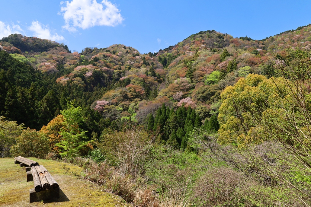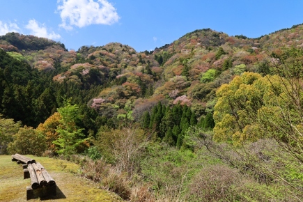 | 松阪市飯南町と大台町の境界を相津峠で越える三重県道710号(飯南三瀬谷停車場線)にて。相津峠は山桜の名所として知られ、県道脇の駐車スペースからの眺めは、まるで山桜と新緑が織り成す錦の屏風のようです。 [2026/04/11撮影](写真拡大) |
